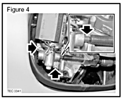 4. Remove and discard two Allen screws securing the steering column tilt adjustment motor to the steering column. (Arrowed in Figure 4).
