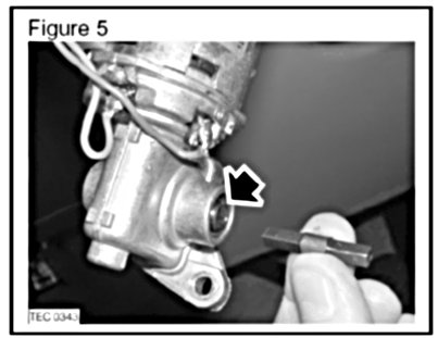 6. Install the original drive spindle into the new steering column tilt adjustment motor. (Arrowed in Figure 5).