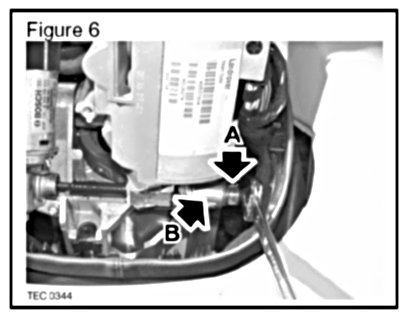 NOTE: It may be necessary to adjust the column tilt adjustment drive gear ('A' in Figure 6) to align the drive spindle and the drive gear and achieve engagement of the steering column tilt adjustment motor.