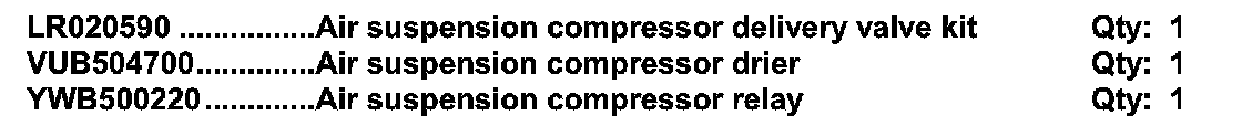 Air Suspension Compressor Delivery Valve / Drier / Relay Replacement; Software Update