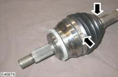 5. Remove and discard the 2 clamps from the inner constant velocity (CV) joint boot.