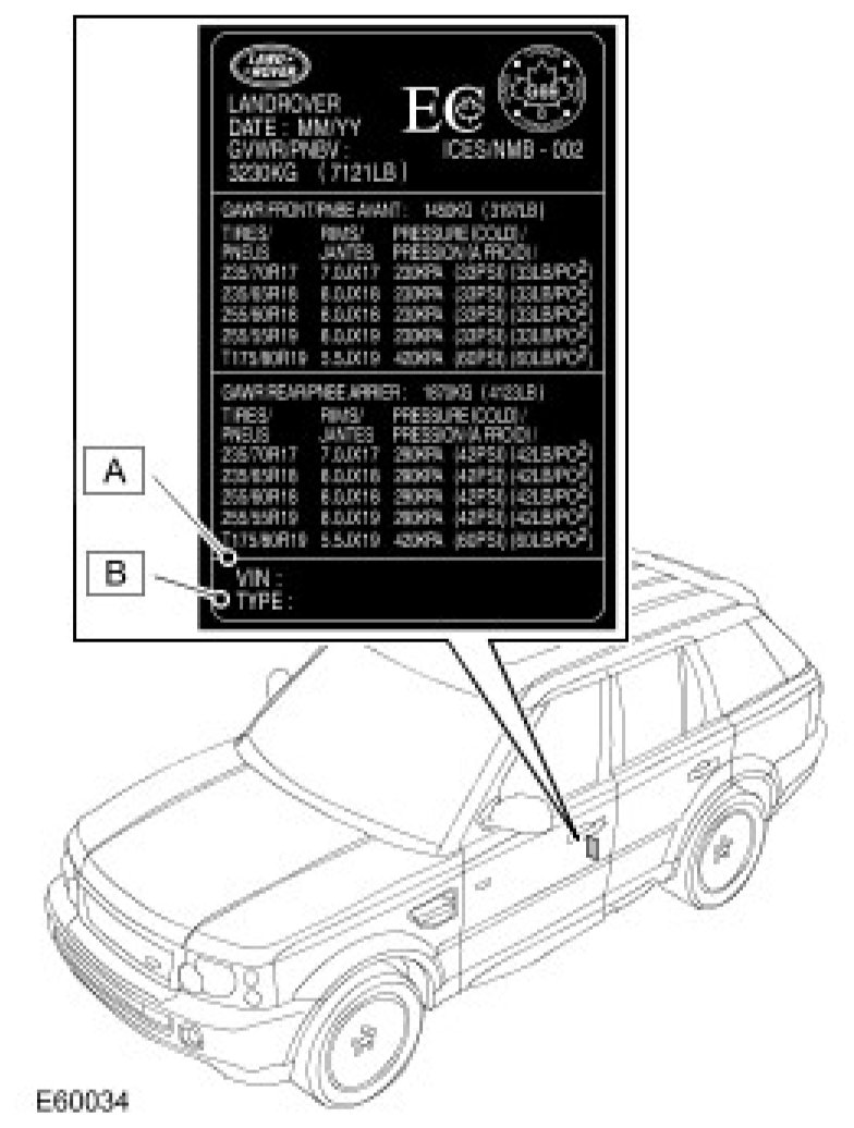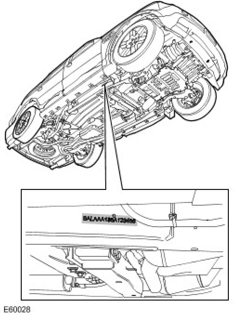 1. Stamped on the side of the RH longitudinal member, rearward of the body front mounting.