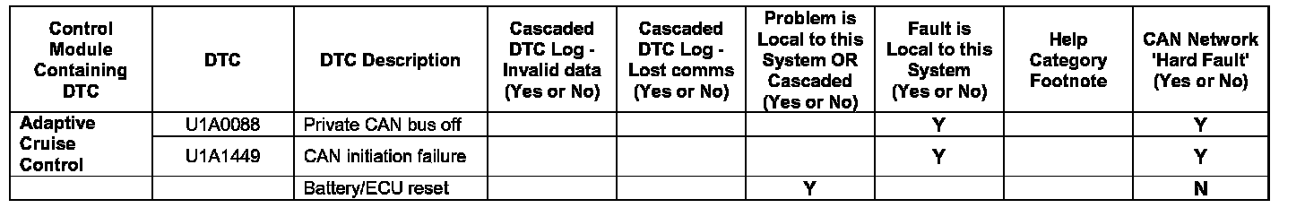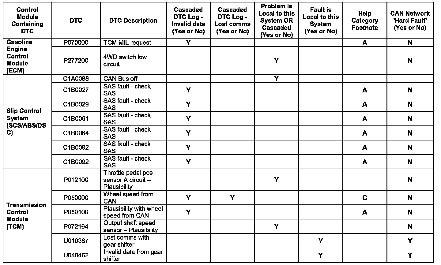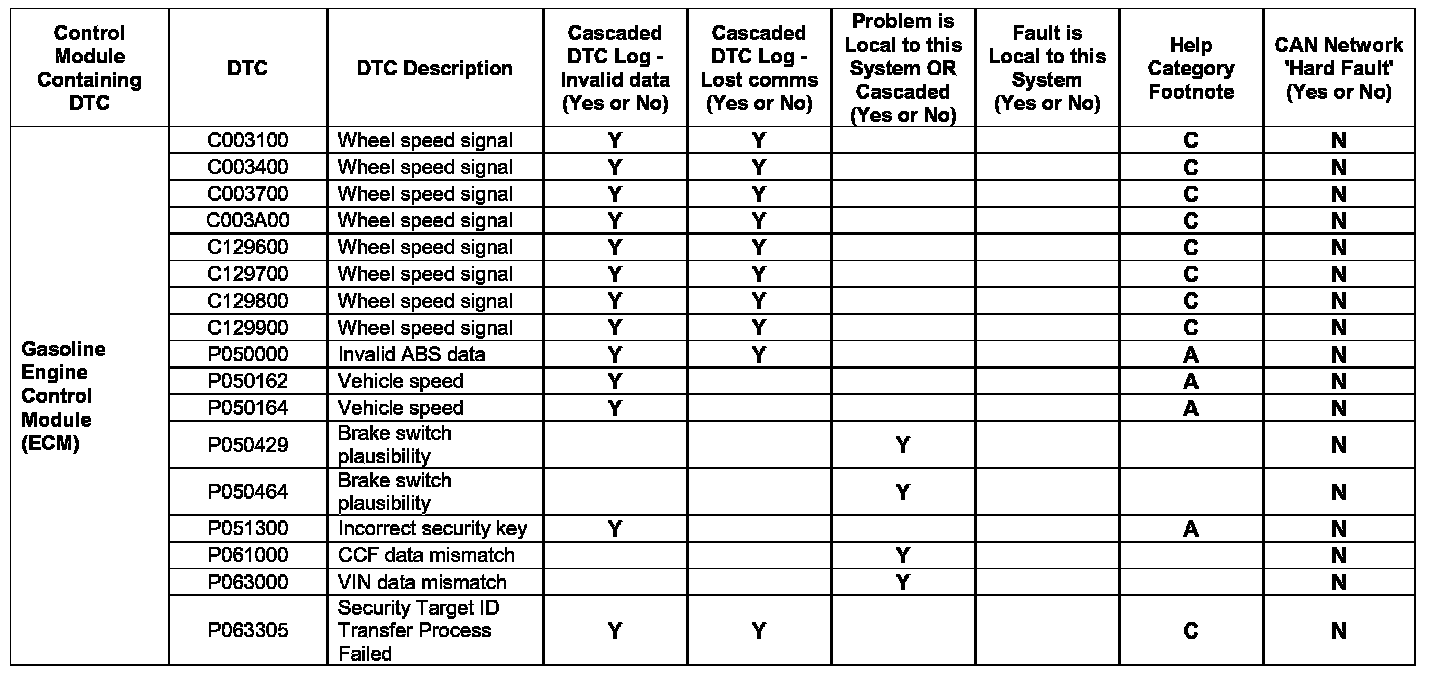 ^ A hard fault which will result in data for engine torque, engine speed, road speed etc. being invalid will then cascade around the vehicle systems as 'U' codes. The other systems then switch to default mode as designed.