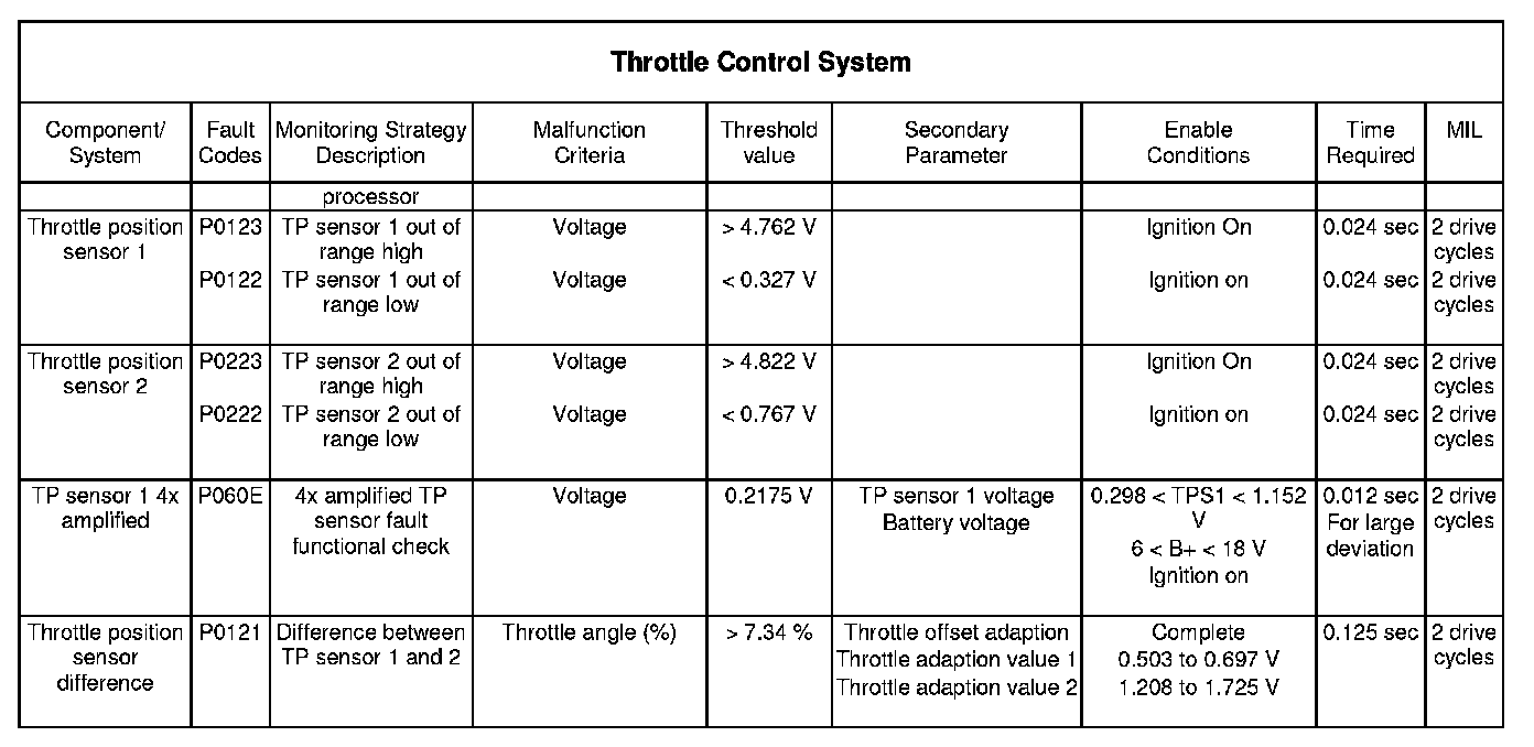 If the above table does not include details of the following enabling conditions: - IAT, ECT, vehicle speed range, and time after engine start-up then the state of these parameters has no influence upon the execution of the monitor.