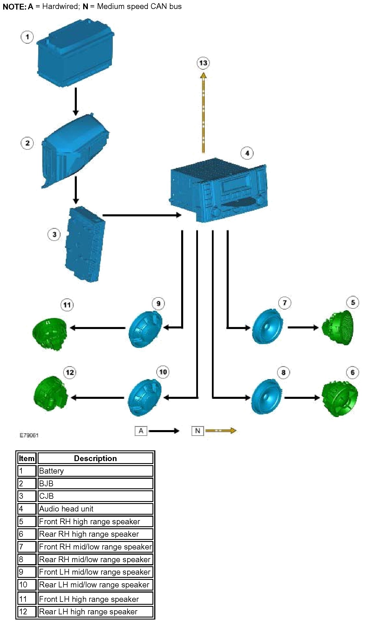 Depending on the audio system fitted there are 3 different speaker configurations, these are: Base audio