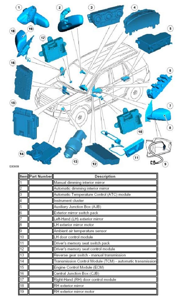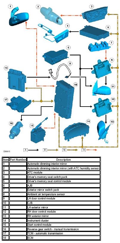 The auto fold and reverse gear mirror dip functions are not customer configurable, but may be enabled or disabled by the dealer using the Land Rover approved diagnostic system. The diagnostic system enables or disables either or both functions by setting the EEPROM contained within the instrument cluster.