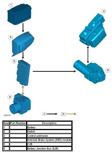 The roof opening panel will only operate when the vehicle is in power mode 6 (ignition on). Power is supplied to the roof opening panel control unit/motor by the CJB, which supplies both a permanent battery and ignition power supply. The CJB also provides a vehicle speed signal to the control unit.