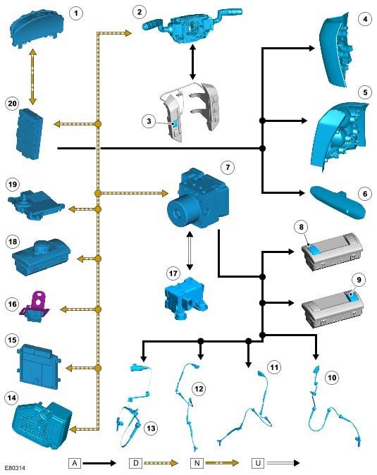 NOTE: A = Hardwired; D = High Speed CAN bus; N = Medium Speed CAN bus; U = Private CAN bus