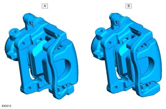 NOTE: The 2 fixed carrier retaining bolts are pre-applied with a thread locking adhesive and must not be re-used during maintenance. New fixed carrier retaining bolts must be used and the original bolts discarded.