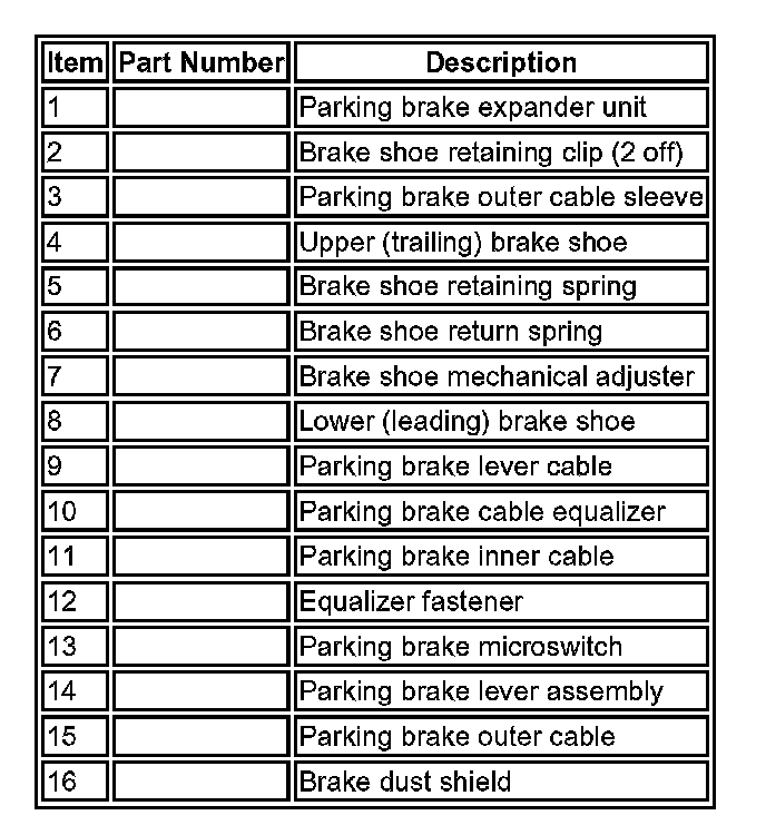 The parking brake is a manually actuated system that operates brake shoes located in the rear brake discs. The inside center of the rear brake disc is manufactured to form the brake drum.