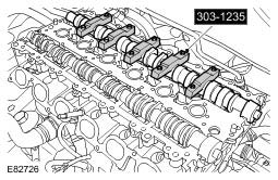 4. Using the special tools, position and secure the exhaust camshaft.