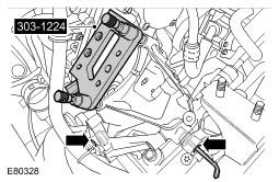 5. Raise and support the transmission to gain access to the engine mount bracket adjuster.