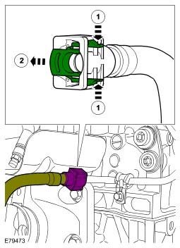 35. Release the clip and disconnect the purge line.