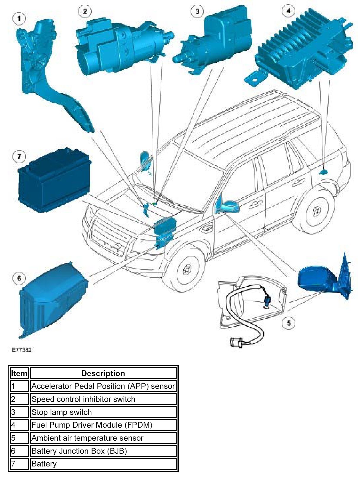 The ECM monitors the DC damper motor and the TP sensor for faults and can store fault related codes. These can be retrieved using a Land Rover approved diagnostic system.