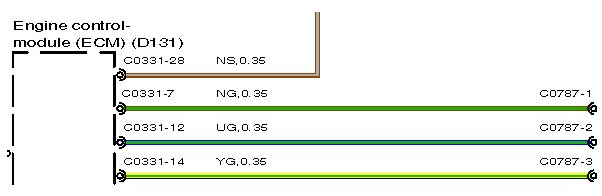 The wire length (in millimeters) is displayed after the colour and cross sectional area; for example, SR,0.35,480. In this example, the figure, 480 indicates the approximate position of the harness splice is 480mm from connector C2335.