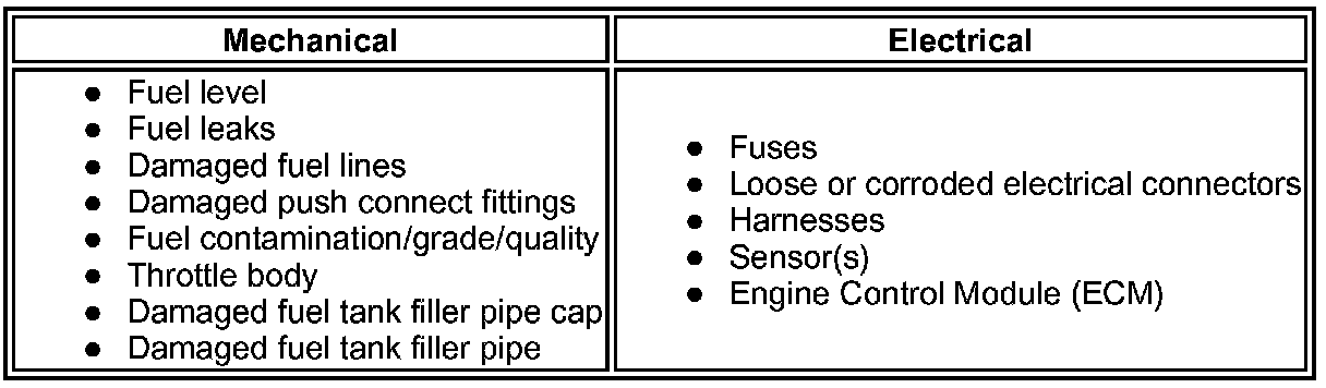 4. If the cause is not visually evident, verify the symptom and refer to the Symptom Chart, alternatively, check for Diagnostic Trouble Codes (DTCs) and refer to the DTC Index.