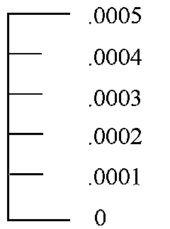 Each minor line = on half-thousandth of one inch (.0005)