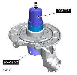 22. Position the wheel knuckle assembly in a press and support on special tools.