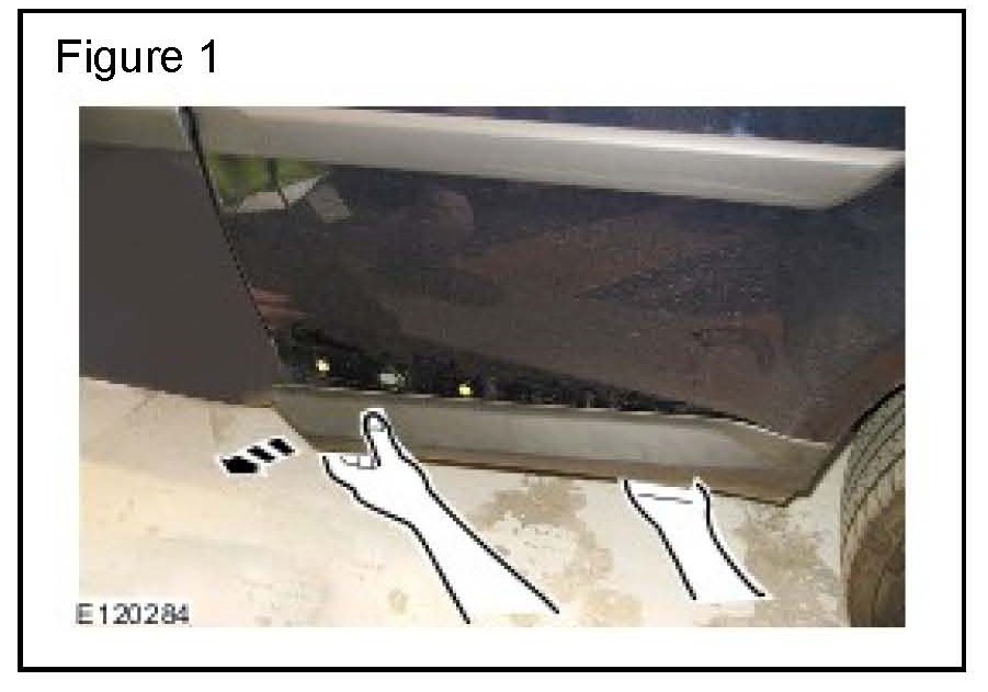 1. Beginning from the front and working rearwards, partially remove door trim lower molding from the door by pulling outwards. (Figure 1)
