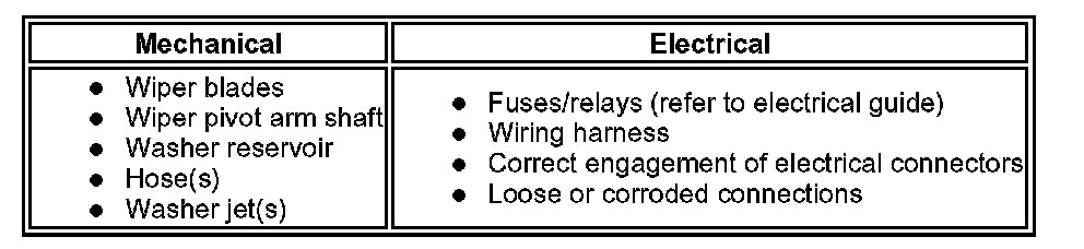 4. If the cause is not visually evident, check for Diagnostic Trouble Codes (DTCs) and Wipers and Washers