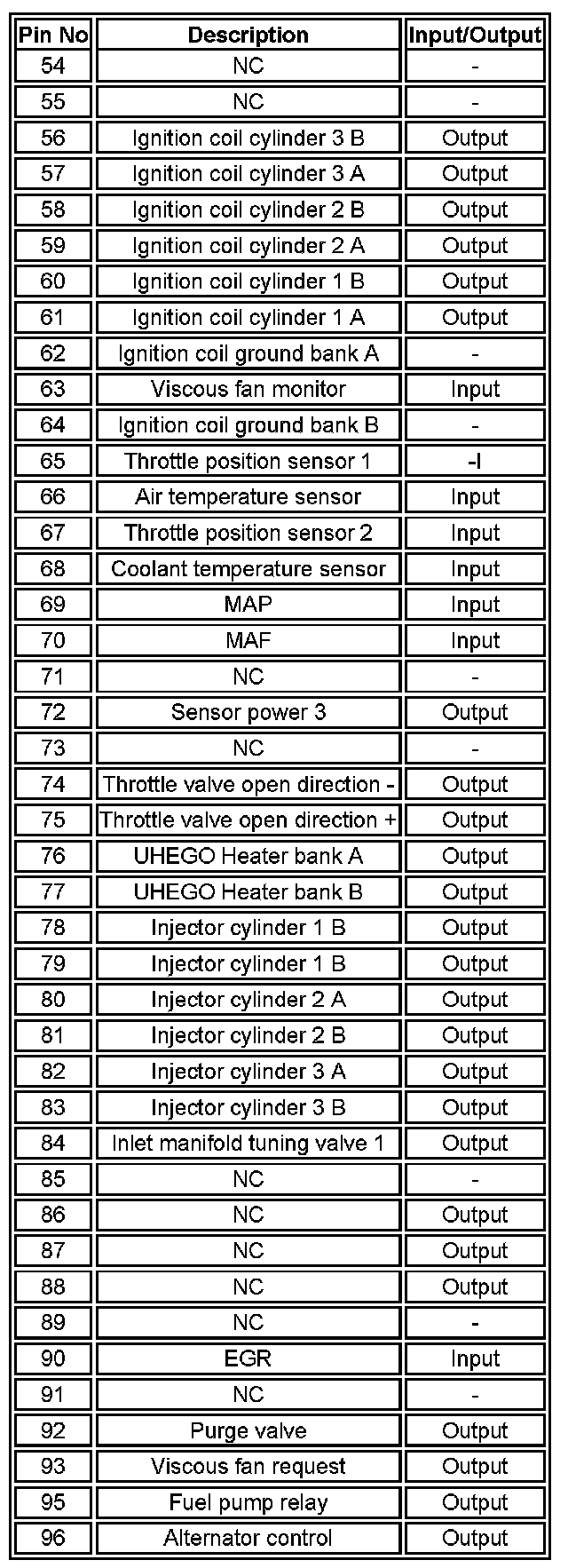 Pin No. 54 - 96: