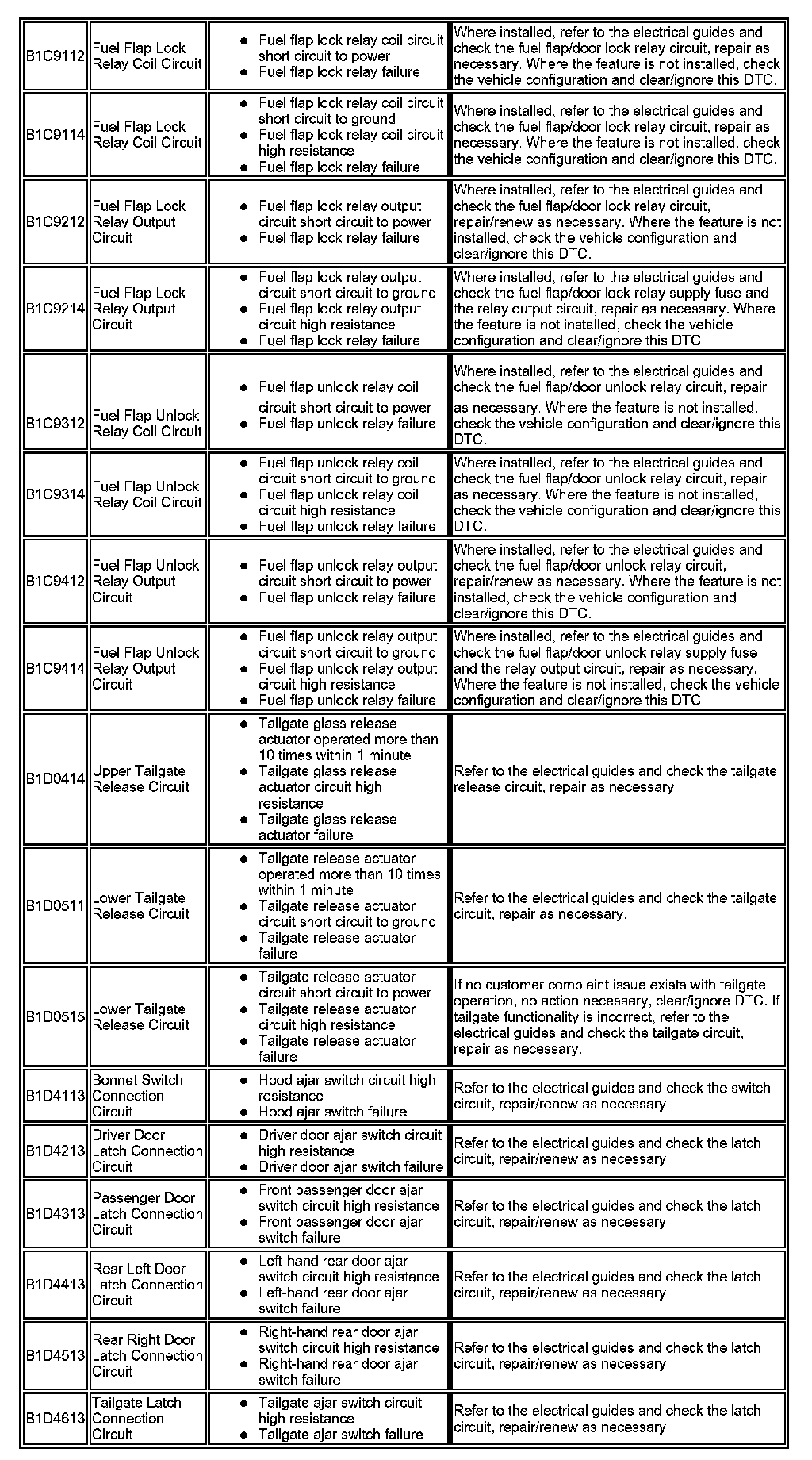 ^ Generic scan tools may not read the codes listed, or may read only 5-digit codes. Match the 5 digits from the scan tool to the first 5 digits of the 7-digit code listed to identify the fault (the last 2 digits give extra information read by the manufacturer-approved diagnostic system).