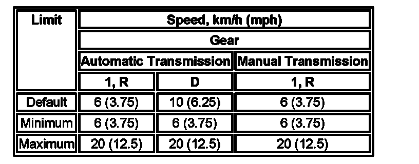 The target speed varies, between minimum and maximum values for each gear and transmission range, depending on driver inputs through the foot pedals. If the foot pedals are not operated, the ABS module adopts a default target speed.