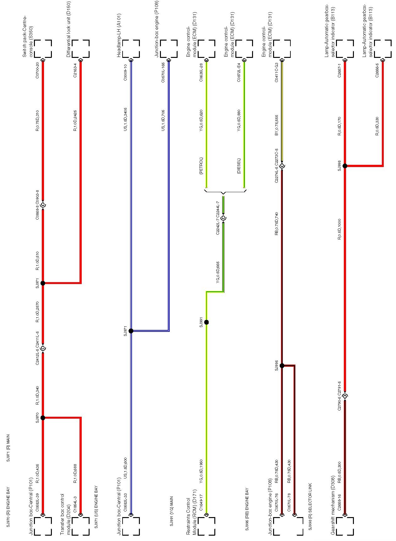 Locations: The location views for connectors and components depicted within these diagrams can be found via the connector's base number (i.e. C0570) at Vehicle/Locations/Connectors. Connector Locations