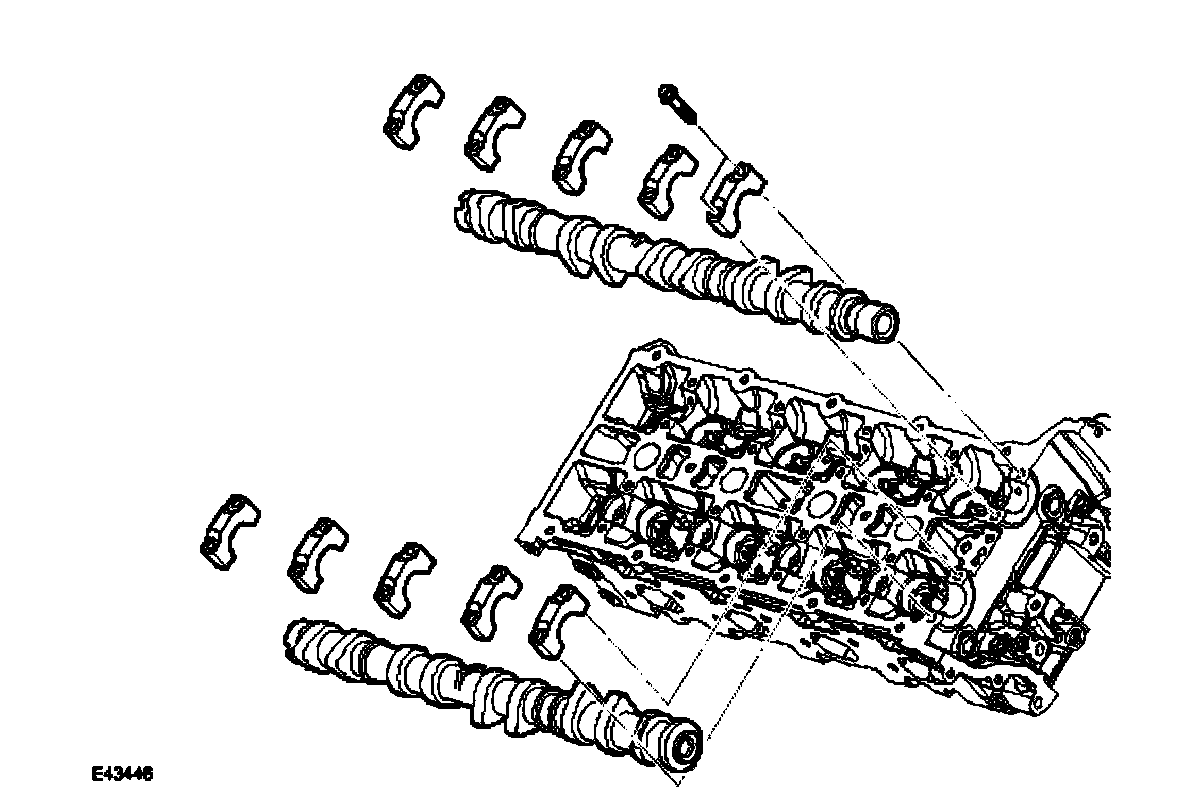 The camshafts are manufactured in chilled cast iron. Five aluminum alloy caps retain each camshaft. Location numbers, 0 to 4 for the intake camshaft and 5 to 9 for the exhaust camshaft, are marked on the outer faces of the caps.