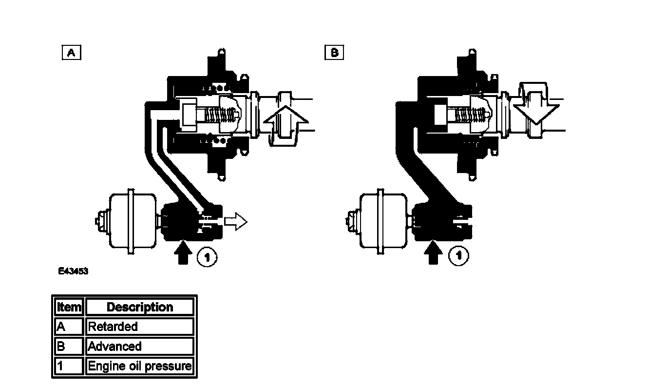 The VVT unit is driven by the primary chain and rotates relative to the exhaust camshaft sprocket. When the ECM requests the camshaft timing to advance, the oil control solenoid is energized moving the shuttle valve to the relevant position to allow engine oil pressure, via a filter, into the VVT unit's advance chambers. When the camshaft timing is requested to retard, the shuttle valve moves position to allow oil pressure to exit the advance chambers, while simultaneously routing the oil pressure into the retard chambers.