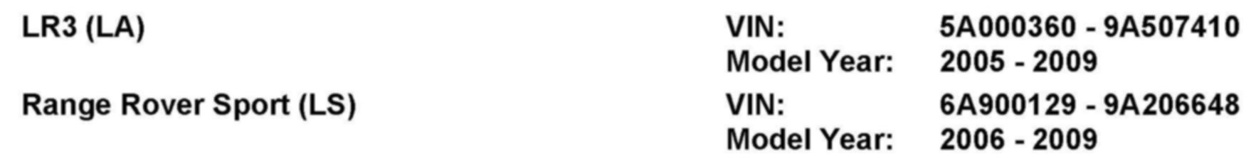 AFFECTED VEHICLE RANGE