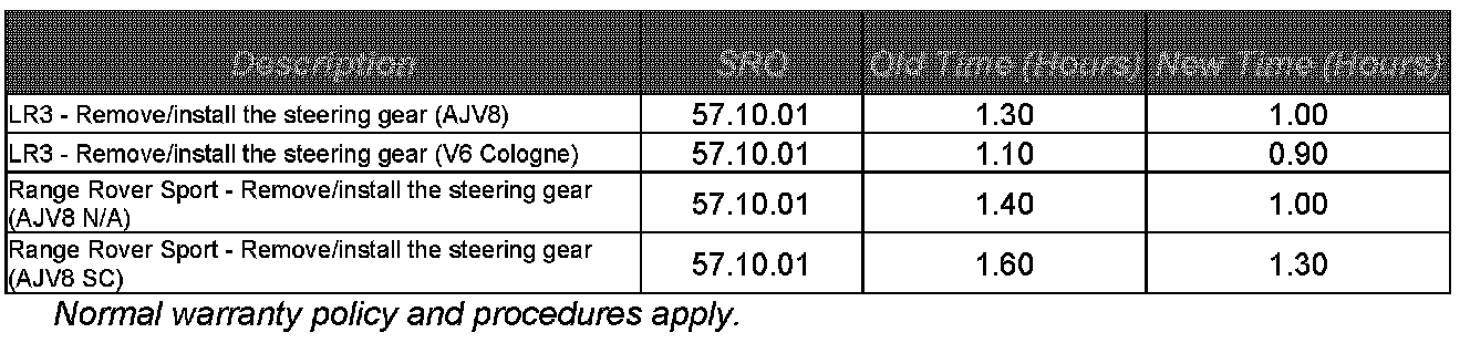 NEW WORKSHOP PROCEDURE: STEERING GEAR REMOVAL/INSTALLATION