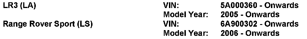 AFFECTED VEHICLE RANGE: