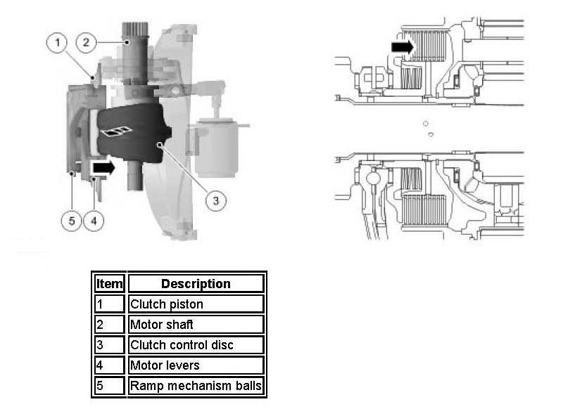 The multiplate clutch assembly for both center and rear differentials act in a similar way. The aim of the multiplate clutch assembly is to prevent excessive differential slip and therefore maximize the traction performance of the vehicle. This is fundamentally different from the 'braked' traction control, which can only counter act differential slip when it occurs.