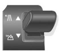 The range change selection switch is located behind the main transmission selection lever in the center console. The switch is a 3-position momentary action center-sprung device. The driver pushes the lever forward to select high range and back to select low range.
