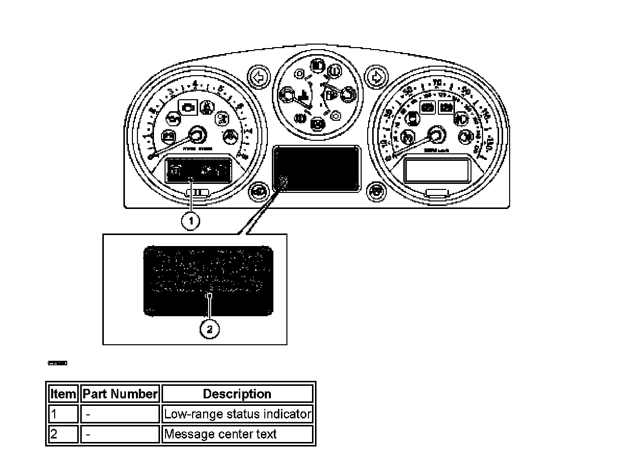 ^ If a range change is requested when vehicle speed exceeds the preset limit, a 'SPEED TOO HIGH FOR RANGE CHANGE' message will be displayed in the message center and the request will be suspended until vehicle speed is reduced. Once vehicle speed is within limits, the message will extinguish and range change will proceed.