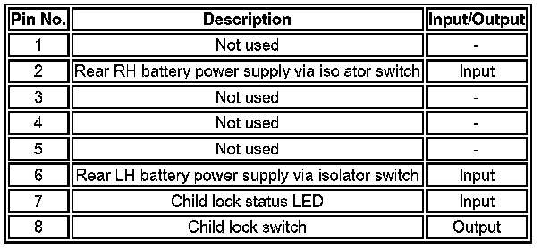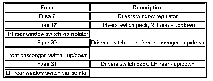 When the switches in the drivers door are used to operate the passenger windows or to isolate the rear windows, the drivers door switch pack outputs a signal to the relevant window regulator. While the isolator is engaged, the rear regulators ignore inputs from the rear window switches, and the drivers door switch pack illuminates a LED in the isolator switch.