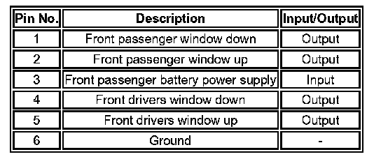 Front Passenger's Door Window Switch Pin Out Information