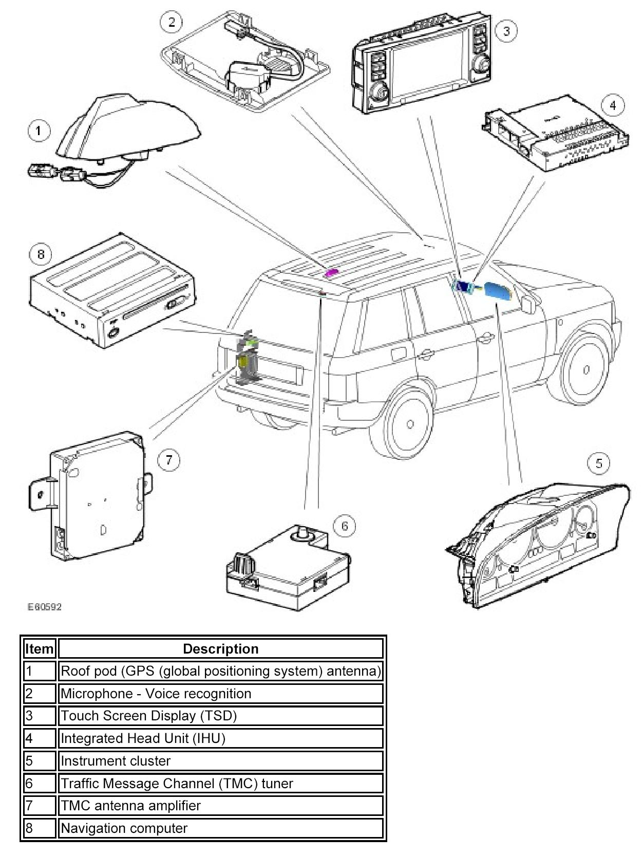 The Range Rover navigation system is a MOST based system. The navigation system provide on-road and off-road navigation capabilities with a DVD (digital versatile disc) based map system. The navigation system has the following advantages over a conventional CD based system: