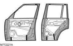 ^ The doors are made from aluminum. The door inner assemblies are made of pressed panels and die-cast panels, which are joined together using a combination of riveting and bonding.