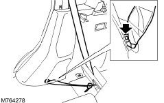 ^ Reposition the rear safety belt through the C-pillar upper trim panel.