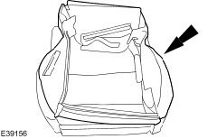 ^ Release the front seat backrest cover lower trim panel from the 2 clips.