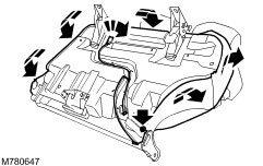 17. Reposition the safety belt through the rear seat cushion cover and the rear seat cushion.
