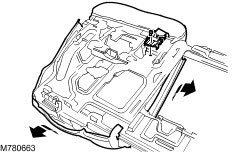 ^ Release the rear seat base wiring harness electrical connector from the rear seat backrest cover.