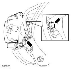 CAUTION: Do not allow the brake caliper to hang on the brake hose