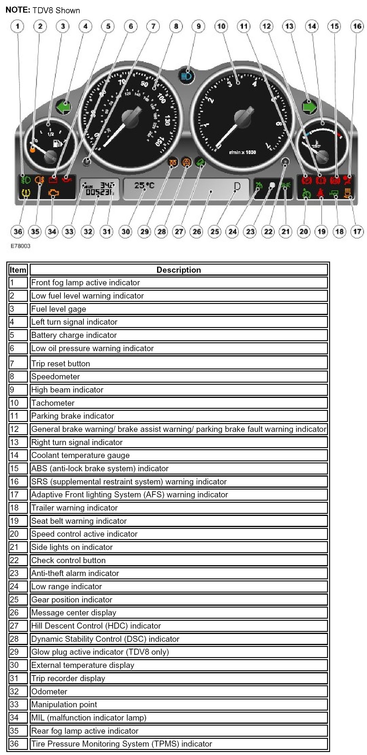The instrument clusters fitted to all Range Rover models are similar and only differ in the following features: