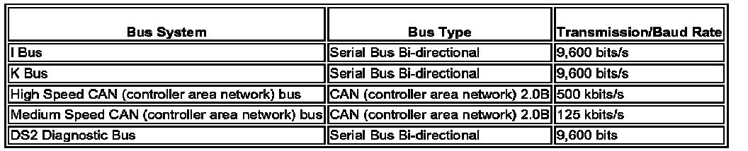 The instrument cluster receives and transmits data on the following bus systems: