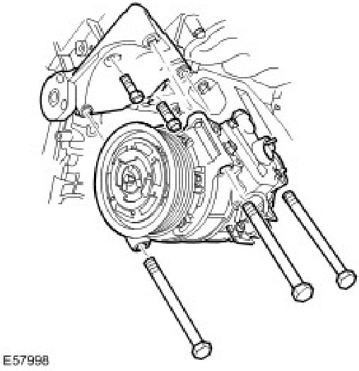 NOTE: 1 A/C compressor bolt will remain captive until the mounting bracket is removed.