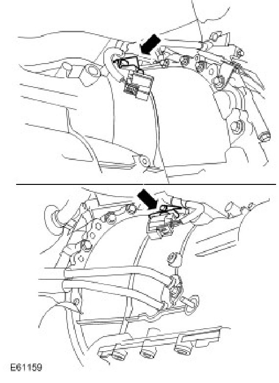 44. Disconnect the front LH HO2S and release the clip.