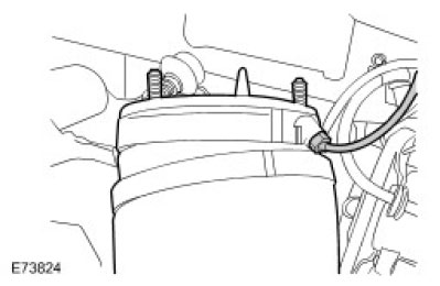 NOTE: Vehicles with high performance brakes have a damper fitted to the top of each front suspension air spring. The damper is secured with high strength thread adhesive and must be replaced if the air spring is renewed.